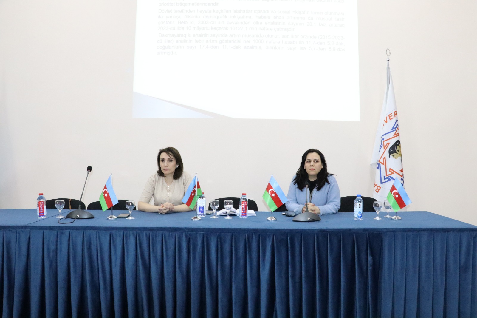 Bakı Qızlar Universitetində tələbələr üçün ailə və reproduktiv sağlamlıq mövzusuna həsr olunmuş maarifləndirici görüş təşkil olundu. Görüşdə Azərbaycan Respublikasının Ailə, Qadın və Uşaq Problemləri üzrə Dövlət Komitəsinin Ailə məsələləri şöbəsinin müdir müavini Kamila Əliyeva və Azərbaycan Respublikası Səhiyyə Nazirliyinin İSİM şöbə müdiri müavini Zümrüd Kazımova iştirak etdilər.
