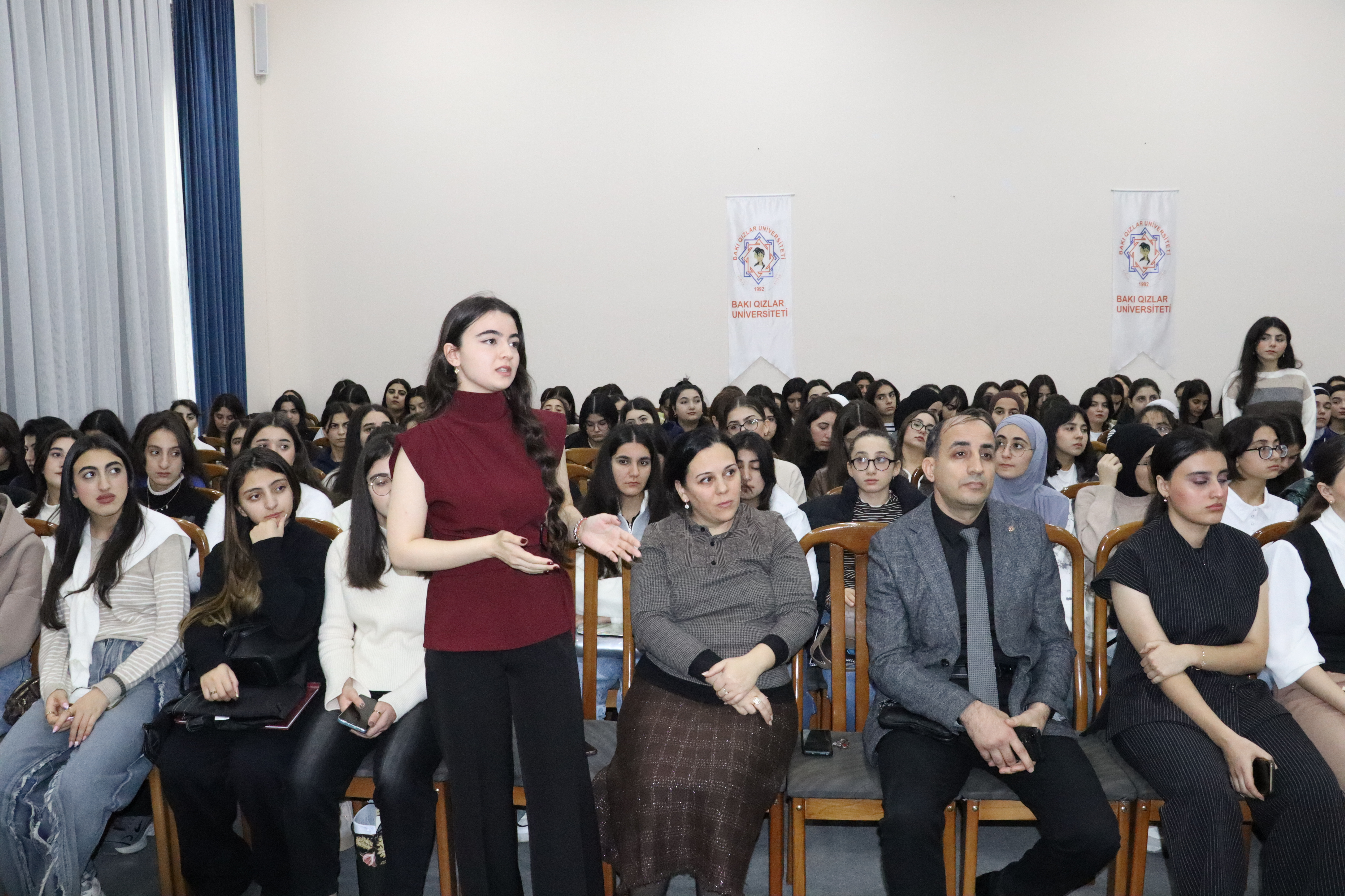 “Psixologiya” kafedrasının müdiri dosent Nurəngiz Rzayevanın çıxışından sonra layihə rəhbərləri – Bakı Qızlar Universitetinin “Psixologiya” ixtisası üzrə tələbələri Röya Cəfərova və Zinyət Hüseynzadə çıxış edərək, tədbirin məqsədi və hazırlanma prosesi barədə məlumat verdilər.